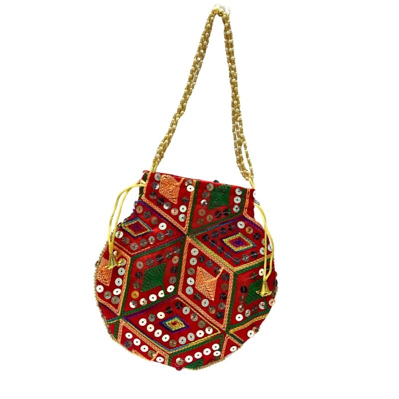JAIN life Rajasthani Style Clutch handbag Silk Potli For Women(Pack of1) (Red)