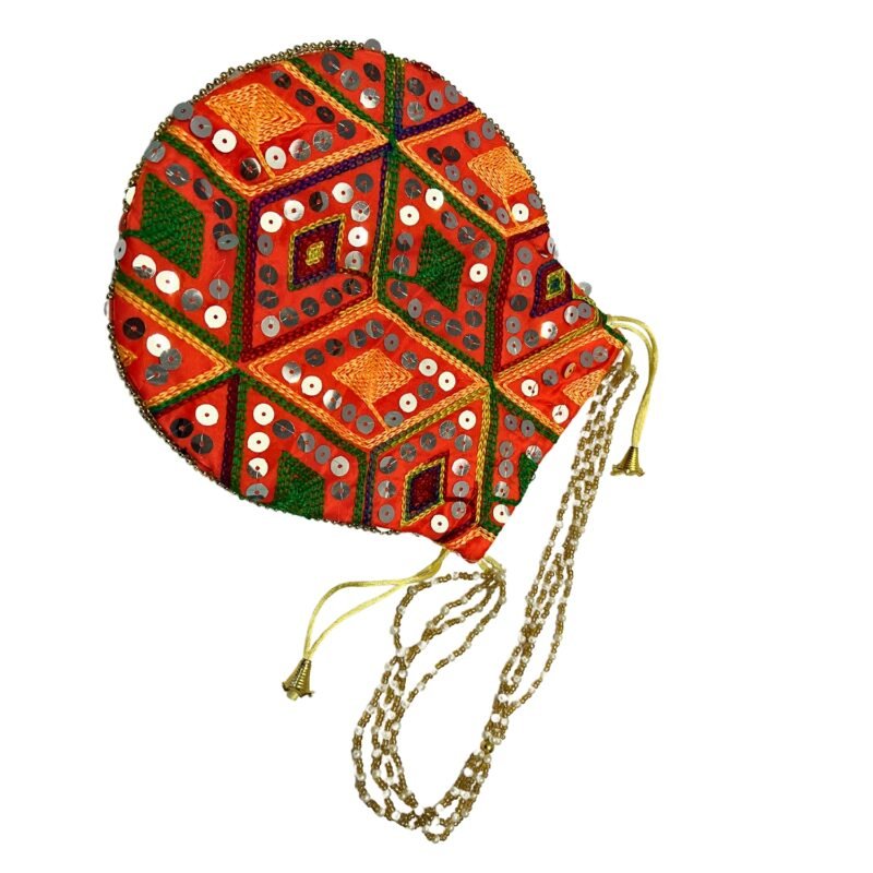 JAIN life Rajasthani Style Clutch handbag Silk Potli For Women(Pack of1) (Orange)