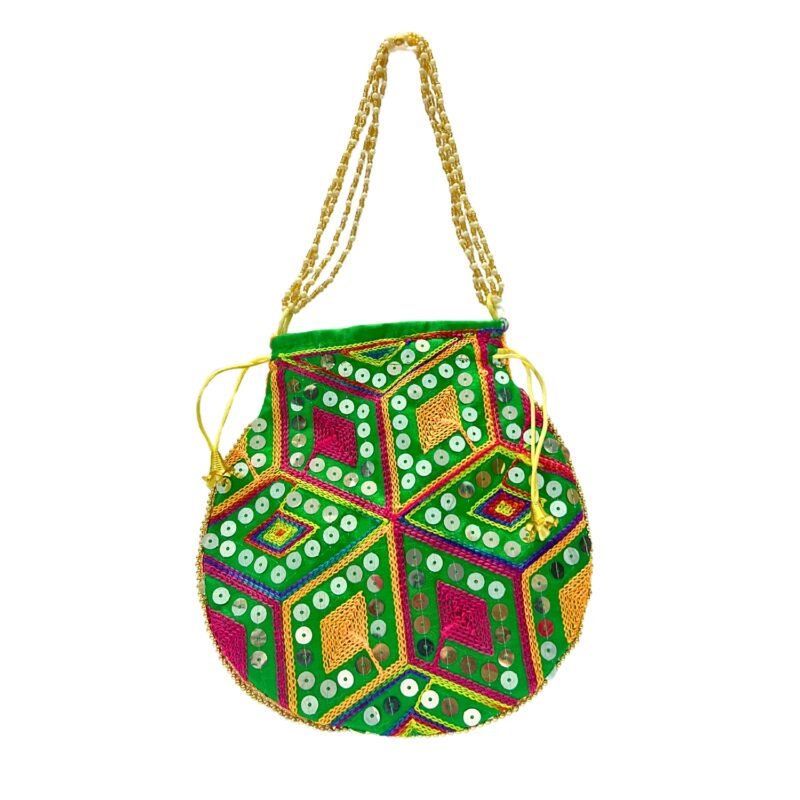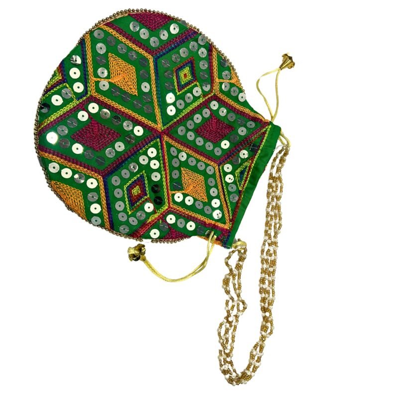 JAIN life Rajasthani Style Clutch handbag Silk Potli For Women(Pack of1) (Green)