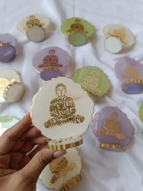 RESIN NAMOKAR MANTRA HANDMADE CAR DASHBOARD STAND FOR CAR, OFFICE TABLE
