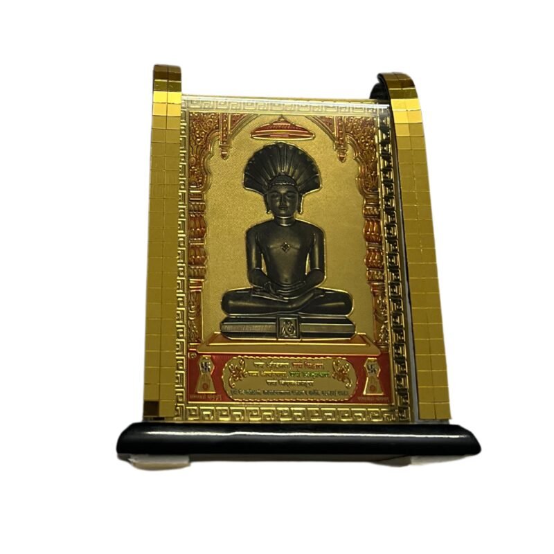 JAIN life Mahaveer Bhagwan Golden Frame Car Dashboard Stand (Pack of 1)
