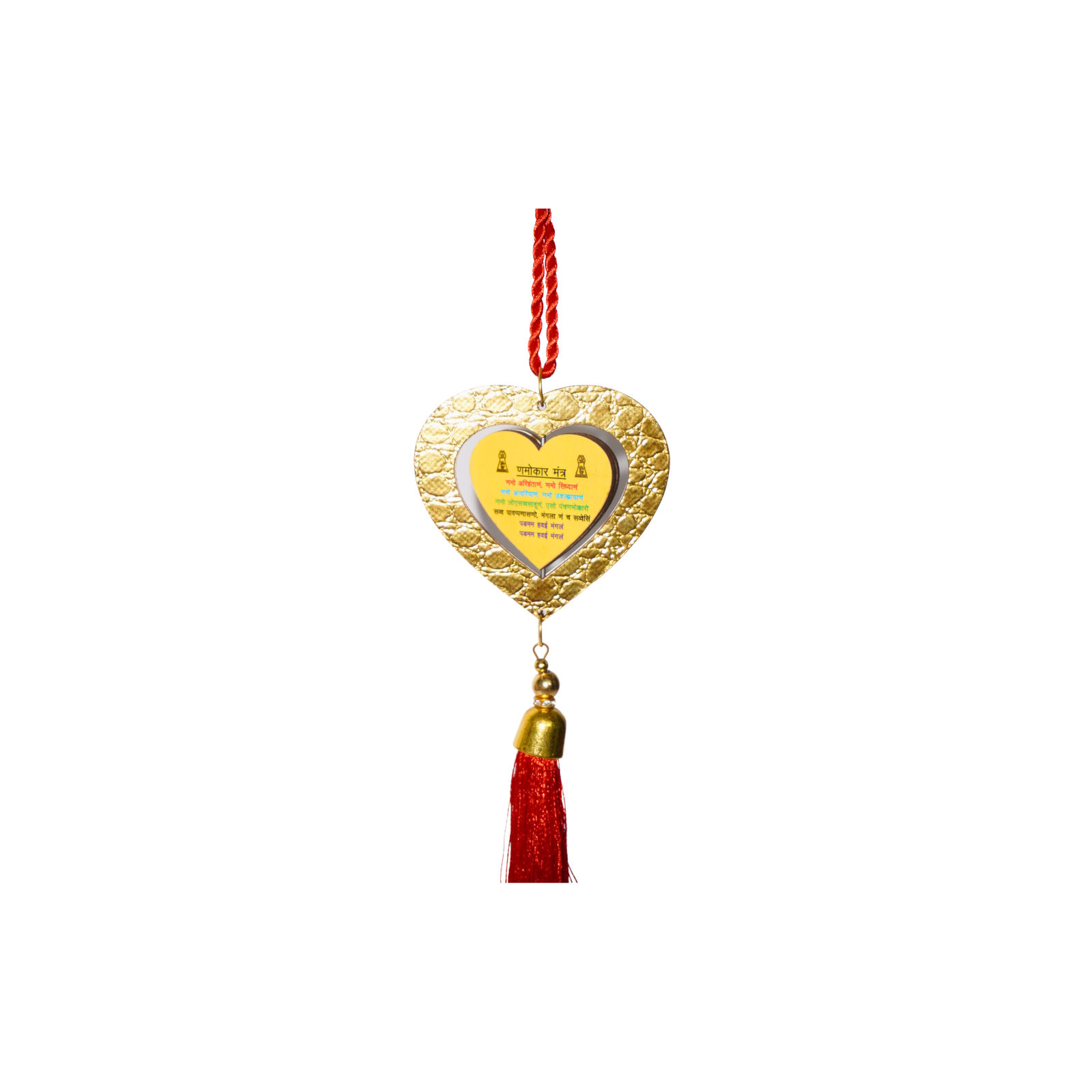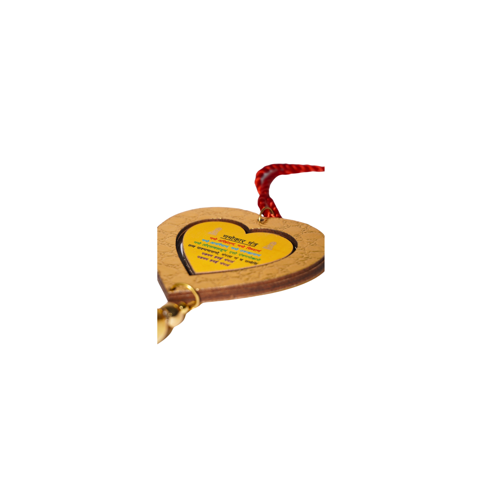 Car Hanging Jai Jinendra | Mahaveer Bhagwan Wooden Car Hanging Glitter Shining Jai Jinendra on one side and Laminated Mahavir Bhagwan photo on other side.Suitable for all Cars Fits on every car’s