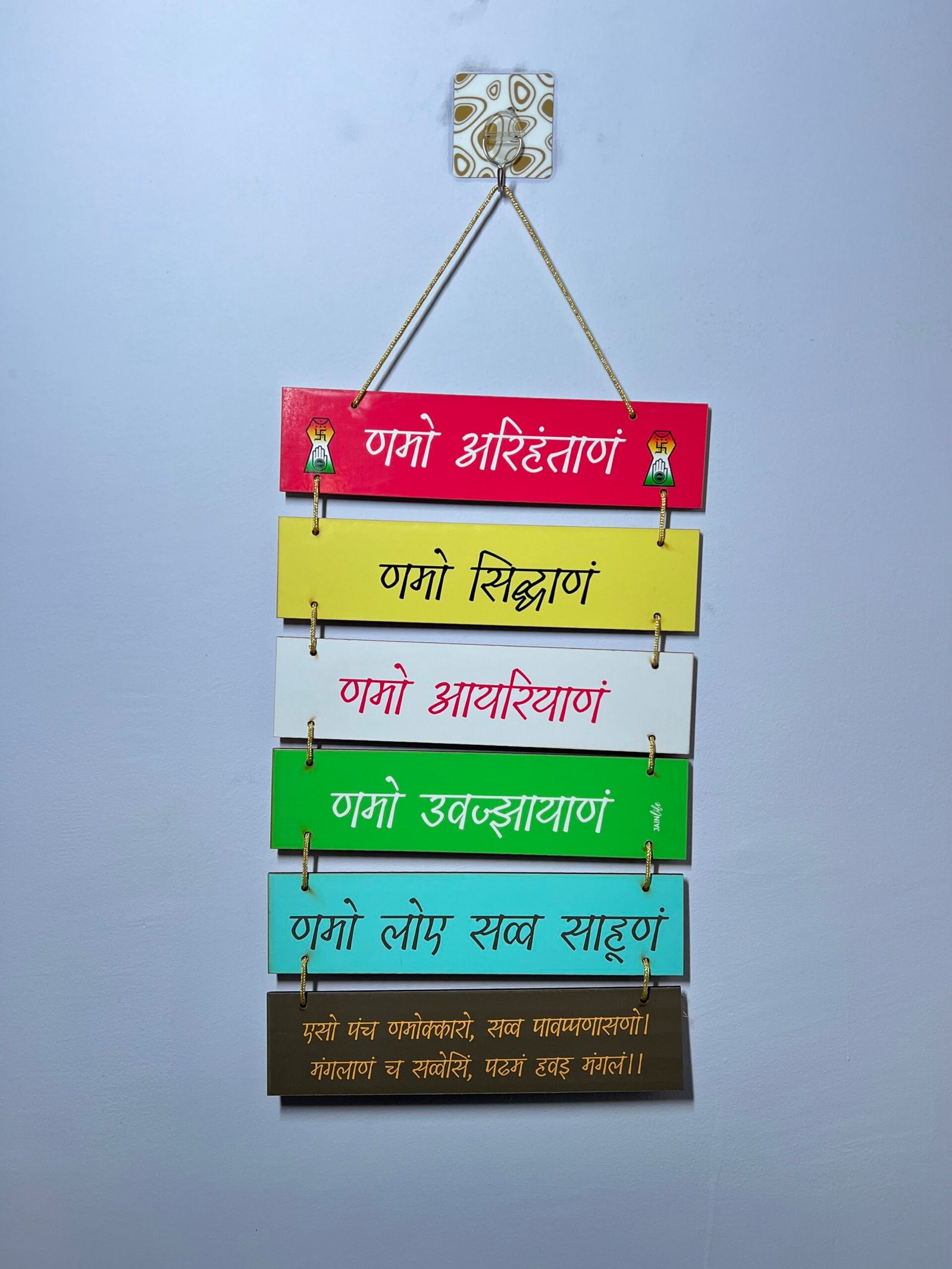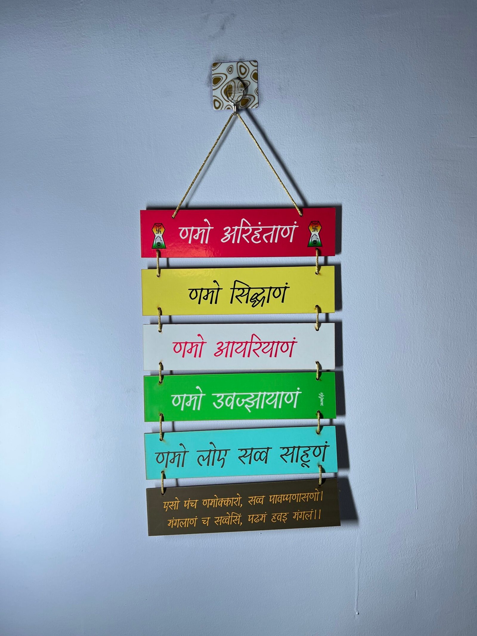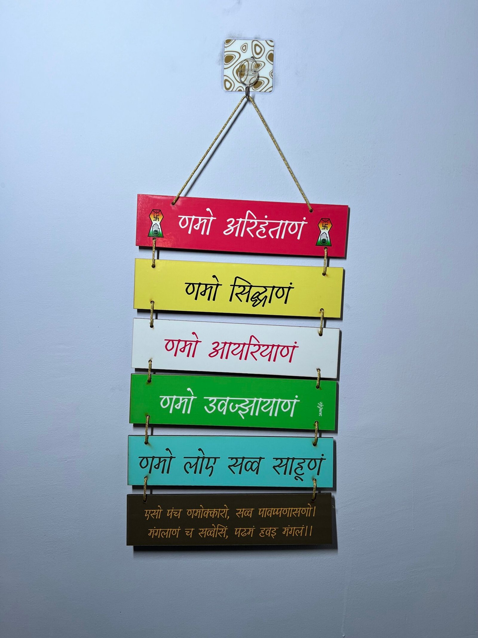 PASTEL COLOR NAMOKAR MANTRA PLANK WOODEN WALL HANGING
