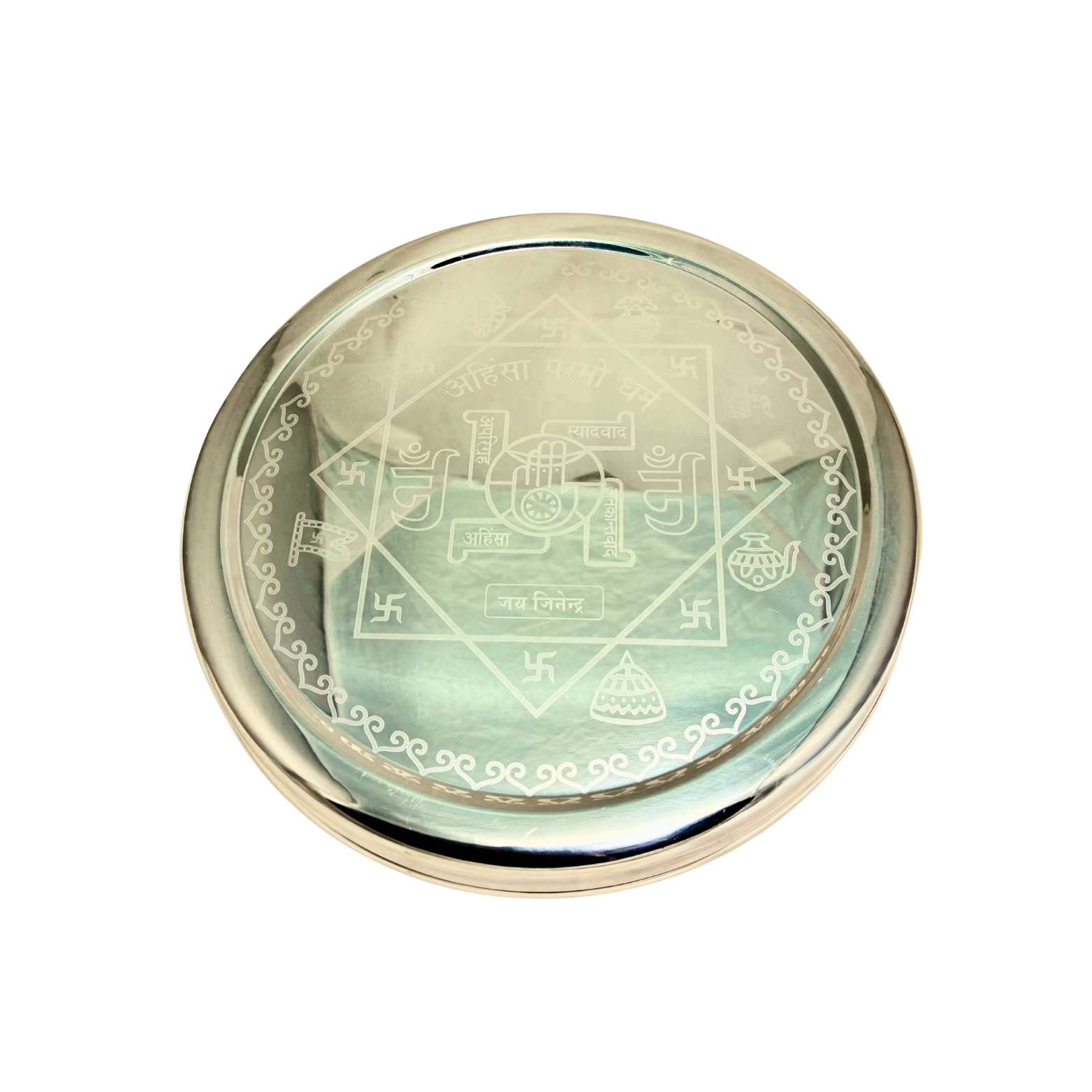 Be the first to review “Silver Jain Pooja Thali box 6 Inch” Cancel reply