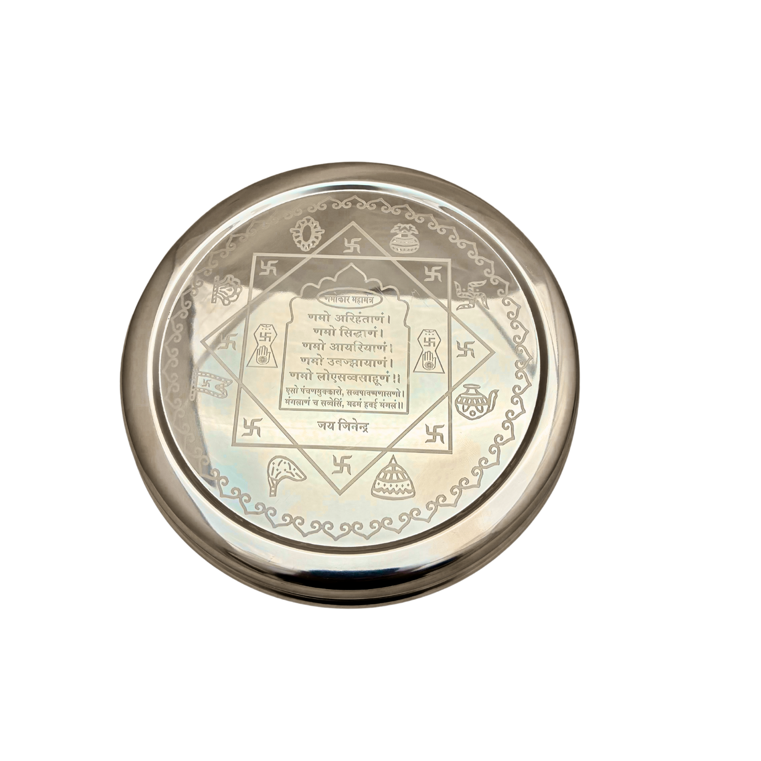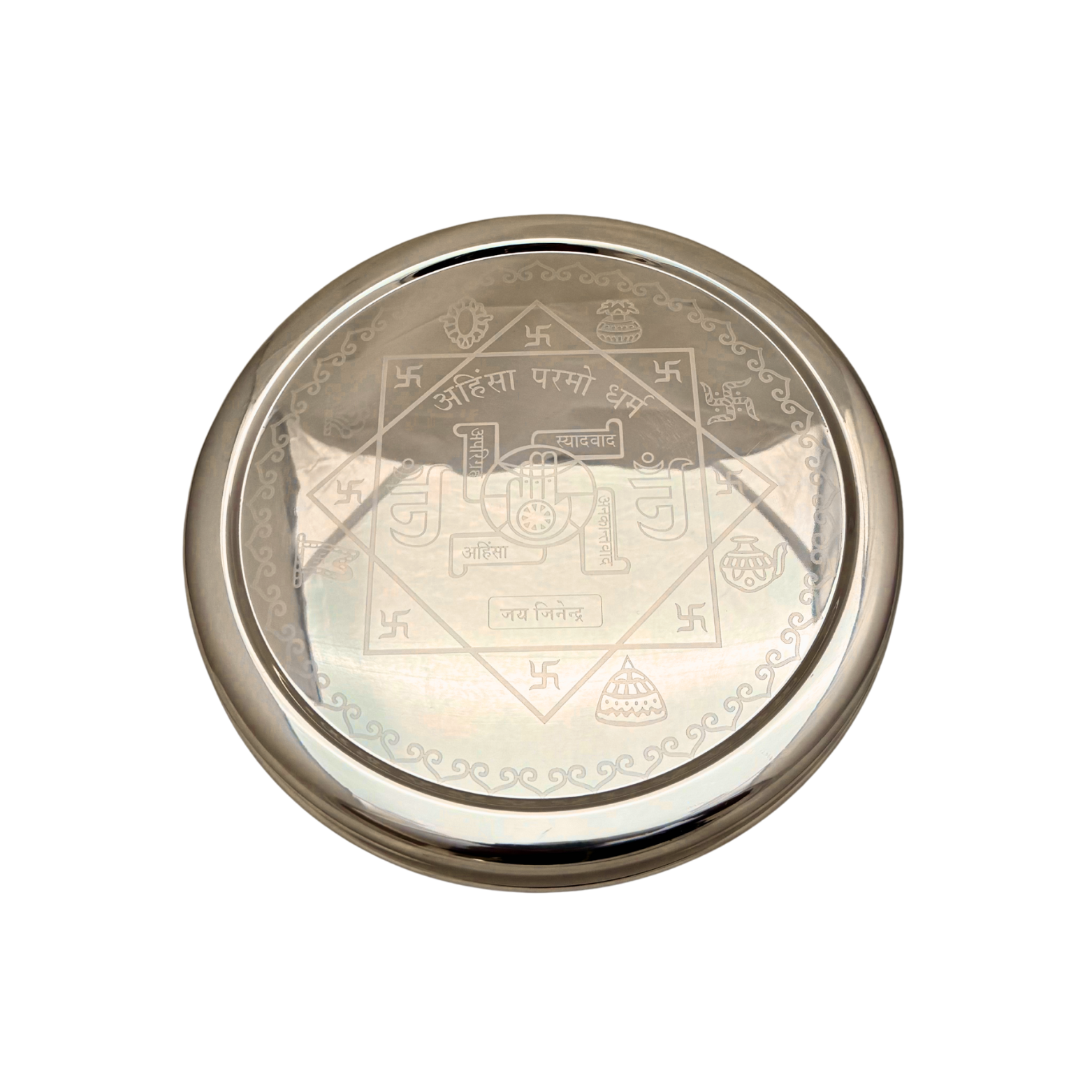 Silver Jain Pooja Thali box 9 Inch