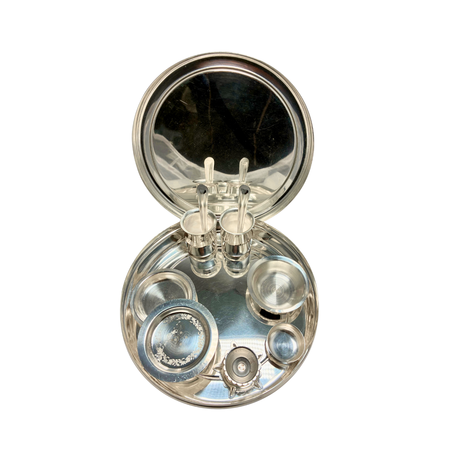 Tags: box pooja thali set, jain box thali set, silevr box thali, silver pooja box thali