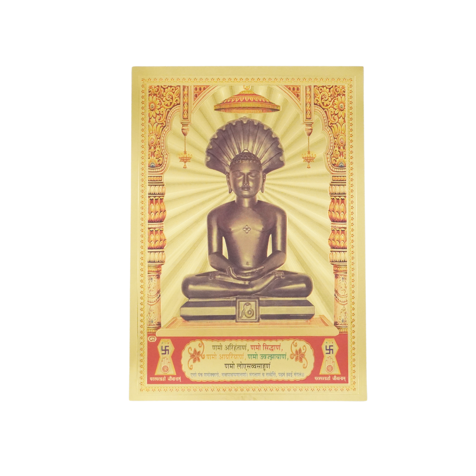 GOLDEN PLATED METALLIC POSTER Lord Parasnath , Non – Tearable, Size 9″ by 12″ Metallic Print on Golden Plated Sheets